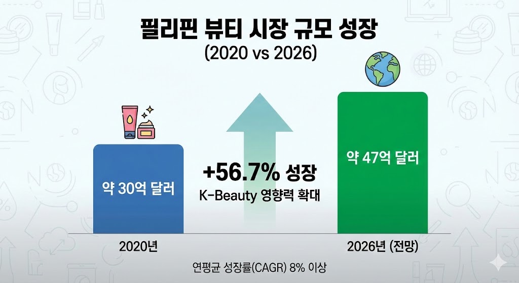 필리핀 뷰티 및 퍼스널 케어 시장은 2026년 기준 약 47억 달러(한화 약 6조 원) 규모에 도달했습니다.