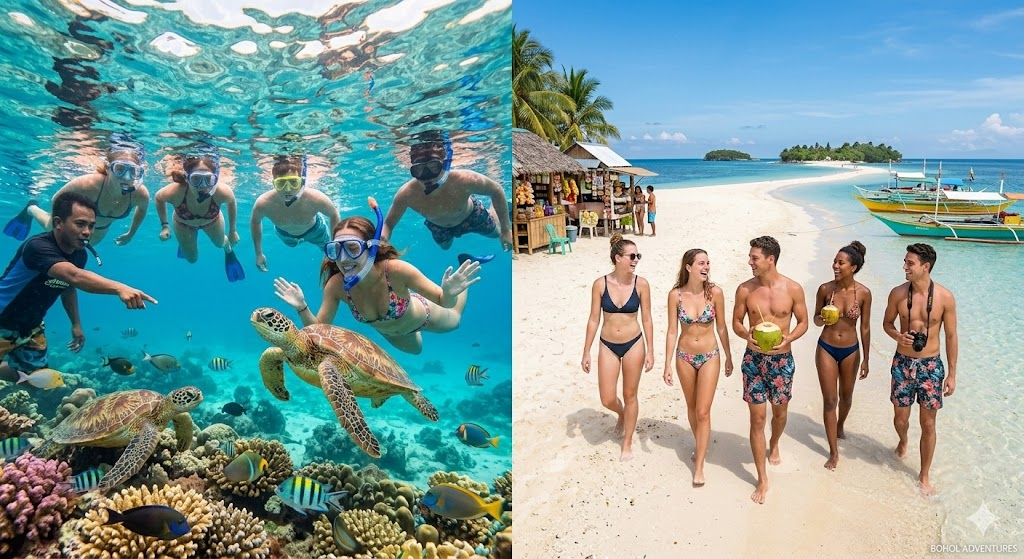 The ultimate sea tour where you can swim with sea turtles at Balicasac and walk on the sandbar of Virgin Island.